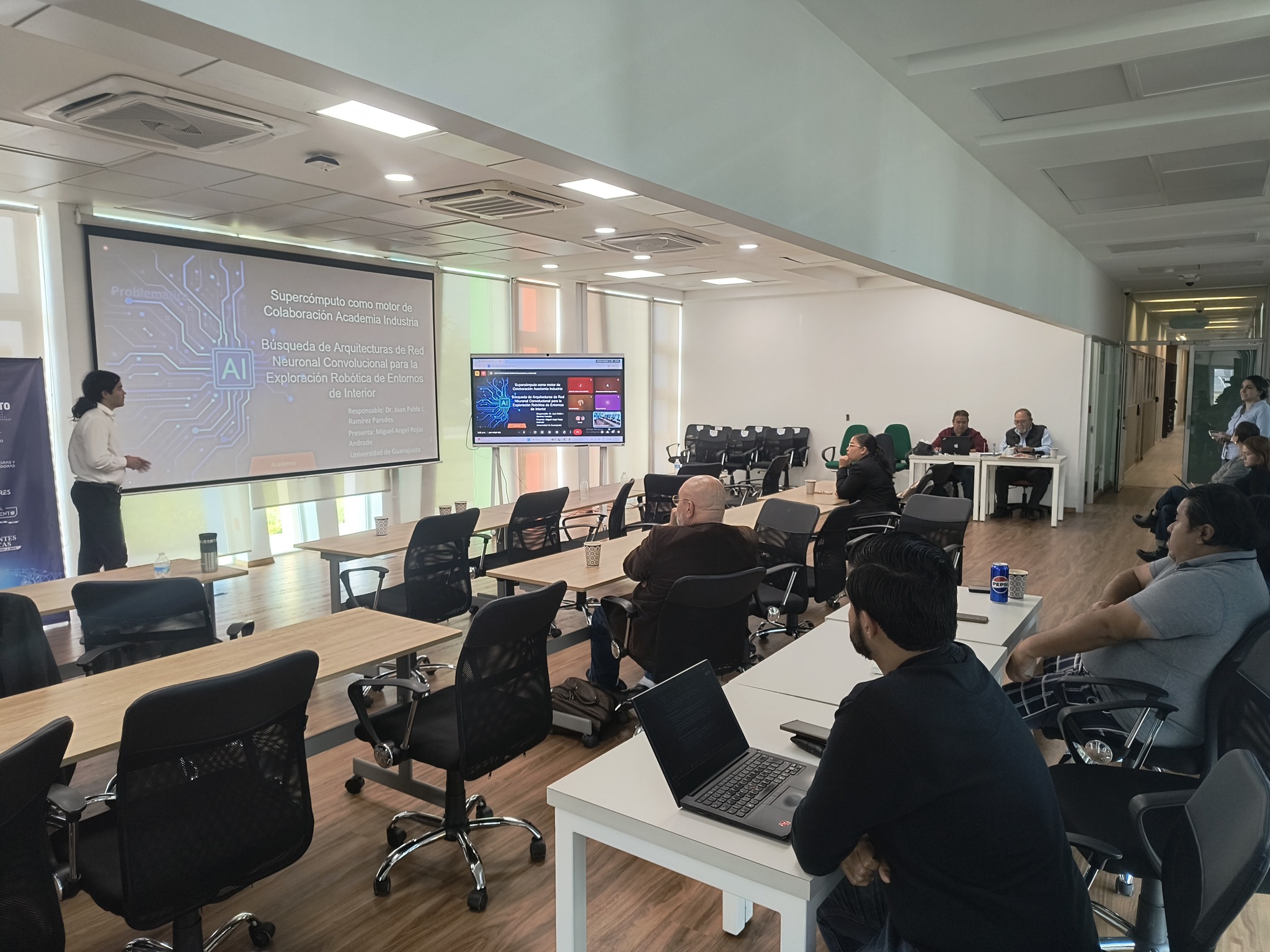 Miguel Angel Rojas Andrade presentó el proyecto “Búsqueda de arquitecturas de red ́neuronal convolucional para la exploración robótica de entornos ́de interior”, bajo la supervisión del Dr. JP Ramirez Paredes, en el evento de cierre de la convocatoria Supercómputo como Motor de Colaboración Academia-Industria. Esto fue gracias al apoyo de la Secretaría de Ciencia, el CIMAT y el Instituto de Innovación, Ciencia y Emprendimiento para la Competitividad de Guanajuato.